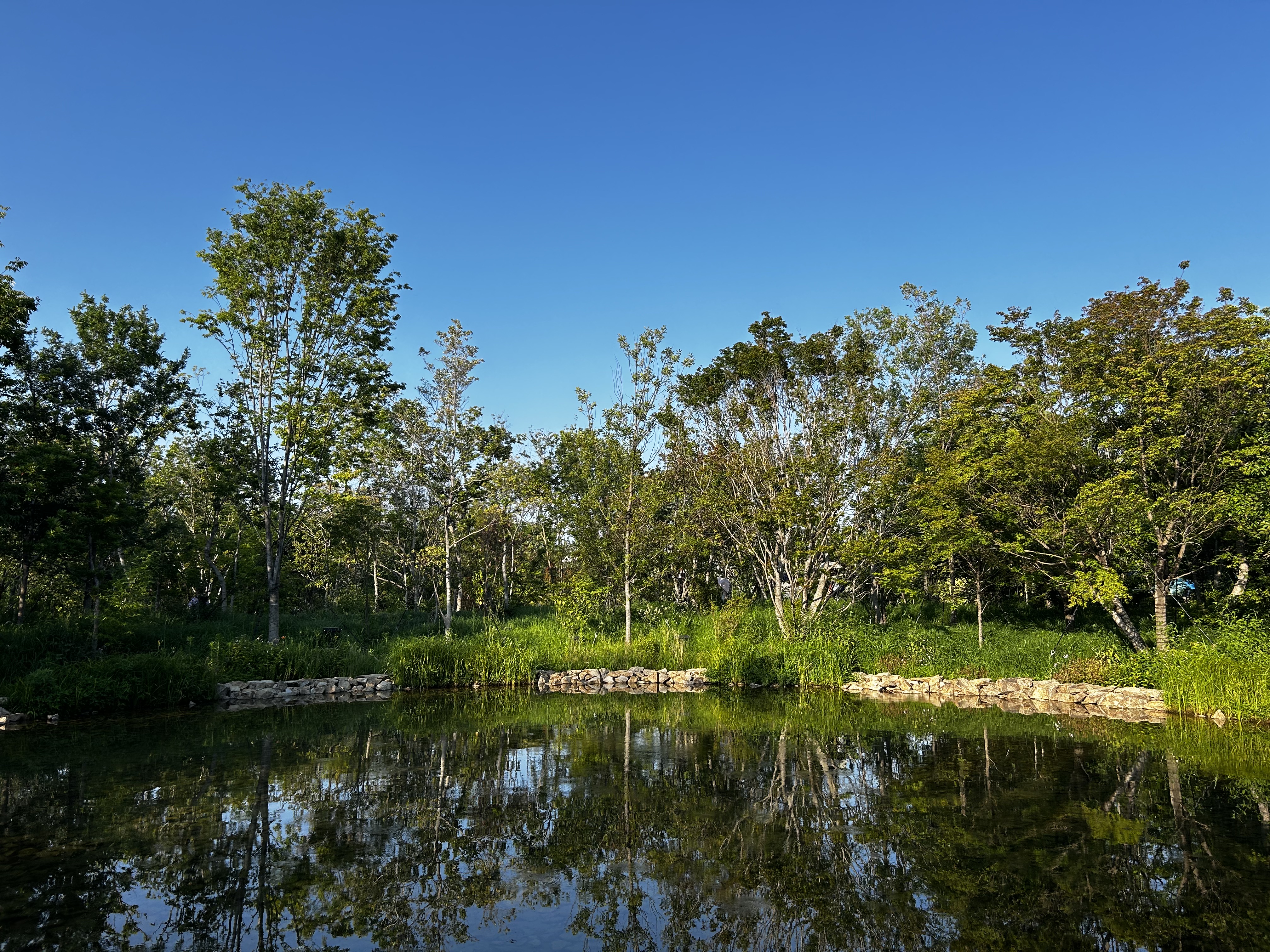 そして、会場中央にある「静けさの森」がすごかった。毎日10万とか20万近い人が蠢く会場全体の中心にあるこの森の、さらにその中心にある池は人の姿もまばらで、周囲の喧噪が嘘のようだ。来たい人でなければ来れない場所がこのわずかな距離の中で実現している驚き、そして本当に森の中にほうり込まれたかのような錯覚すら覚える驚きは新鮮でもあった。これは終わって壊すのはあまりに勿体ないし、大屋根リングよりもむしろこの万博のシンボルとして未来へと残すべき存在だと思うけどどうなんだろうか。