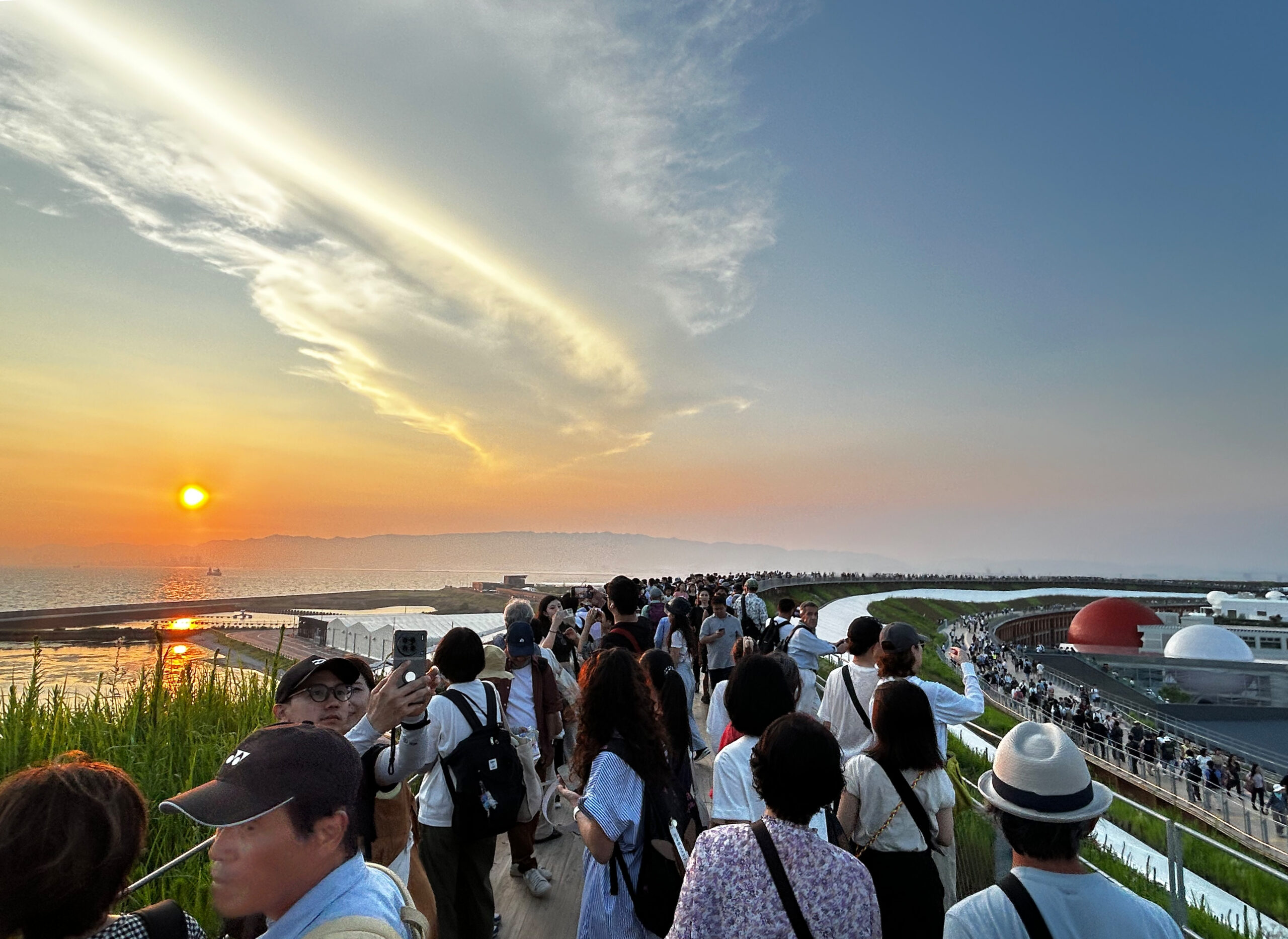 が、実際に会場内のパビリオンを移動をしたり休憩したりといったことをしてみると、見方が変わった。大屋根リングは建築というよりも屋根付きの公園のようなものであり、縦横無尽・自由自在に会場内を蠢く何万人もの来訪者の動線を上下二層で捌く道路のようなものであり、どこに移動するにもリングに戻ると自分の位置が把握しなおせるランドマークだった。